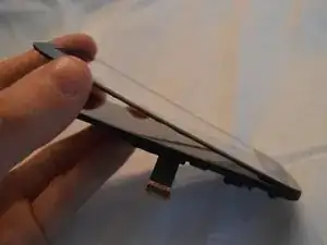 Осторожно подденьте по периметру там, где серая пластмасса соприкасается со стеклом дисплея.