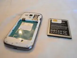 Извлеките аккумулятор, потянув за небольшую выемку внизу, и сдвиньте SIM‑карту вбок, чтобы вынуть её из корпуса.