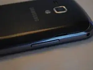 Найдите маленькое отверстие на левой стороне телефона рядом с кнопкой регулировки громкости; в него можно вставить ноготь и поддеть крышку батарейного отсека.