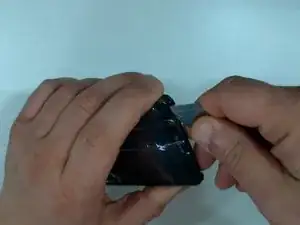 С лезвием немного подденьте стекло, чтобы образовать зазор для пластикового инструмента.