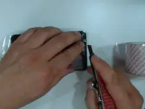Осторожно вставьте пластиковый инструмент между стеклом и ЖК-дисплеем.