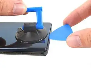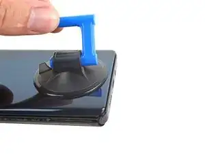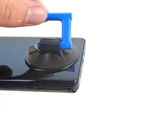 Потяните присоску вверх с сильной, равномерной силой, чтобы создать зазор между задней крышкой и рамкой.