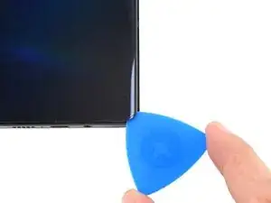 Проведите медиатором вдоль правого края телефона, чтобы отделить клей.