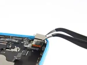 Снимите металлическую скобу разъёма аккумулятора с iPhone.