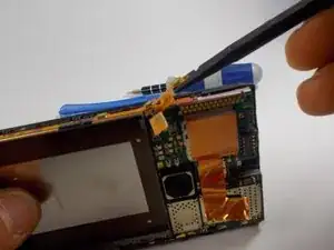 Просуньте инструмент под шлейф и подденьте следующий сенсор кнопки.