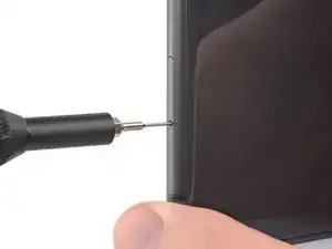 Вставьте инструмент для извлечения SIM-карты или скрепку в маленькое отверстие в лотке SIM-карты, расположенное рядом с кнопкой на краю iPhone.