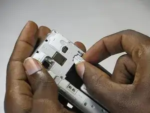 Используйте вырез для пальца, чтобы помочь вытолкнуть старую SIM-карту. SIM-карта должна выходить в направлении батареи.