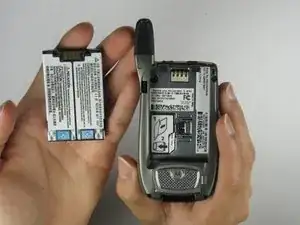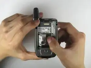 Поднимите аккумулятор из телефона, толкая его в сторону антенны.