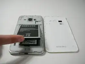 После того как крышка снята, найдите аккумулятор с надписью "SAMSUNG".