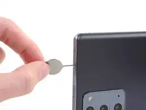 Используйте это руководство, чтобы удалить лоток для SIM-карты и SIM-карту на вашем Samsung Galaxy Note20.