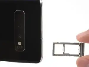 Galaxy S10 имеет гибридный лоток для SIM-карты. Извлечение этого лотка позволяет вам заменить nano SIM-карту, добавить карту памяти microSD или добавить вторую nano SIM-карту (только для некоторых моделей).