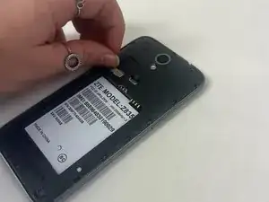 Аккуратно извлеките SIM‑карту из задней части телефона, осторожно сдвинув карту вверх и подняв её. Отложите SIM в сторону.