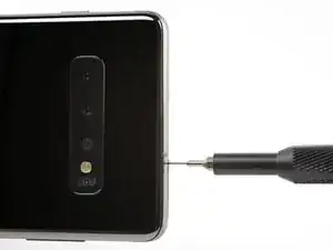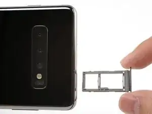 Galaxy S10+ имеет гибридный лоток для SIM-карты. Извлечение этого лотка позволяет заменить нано SIM-карту, добавить карту памяти MicroSD или вставить вторую нано SIM-карту (только для определенных моделей).