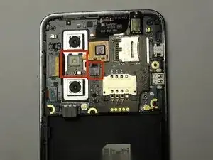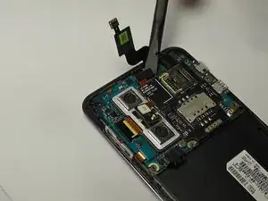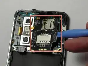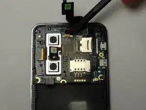 Используйте лопатку или пластиковый инструмент для вскрытия и осторожно отсоедините шлейф, подключённый к черной плате микро-SIM.