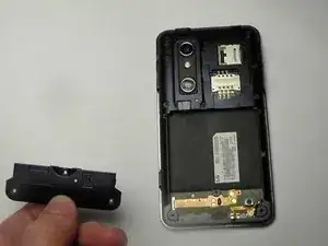 Используйте палец или инструмент для вскрытия, чтобы выдавить динамик, начиная с небольшого выреза в нижней части телефона.