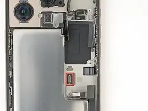 Пальцем или лопаткой подключите пружинные разъёмы динамика и антенны 5G mmWave (только для США), расположенные в правом верхнем углу платы.