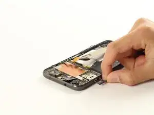 С помощью пинцета аккуратно приподнимите верхнюю часть материнской платы (со стороны камеры) и извлеките её из устройства.
