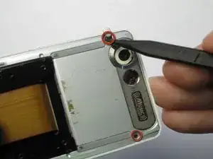 Снимите пластиковые зажимы, которые покрывают два винта, как показано на первом снимке.