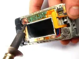 Удалите компонент. Используя паяльник, отпаяйте верхний слуховой динамик.