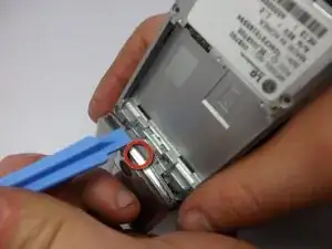 Поднимите одну сторону батареи, используя пластиковый инструмент или пальцы.