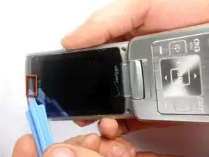 Вставьте пластиковый инструмент в зазор и приподнимите экран.