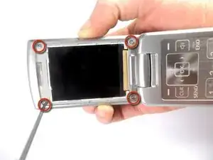 Открутите четыре угла экрана, используя винты диаметром 3.21 мм, чтобы отделить верхнюю крышку телефона.