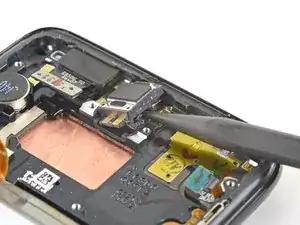 Используйте плоский конец лопатки, чтобы отсоединить разъём фронтальной камеры.