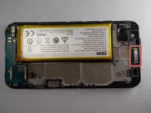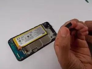 Удалите один винт с головкой Phillips диаметром 2.381 мм с материнской платы, расположенный в верхней средней части телефона рядом с нижним левым углом задней камеры.