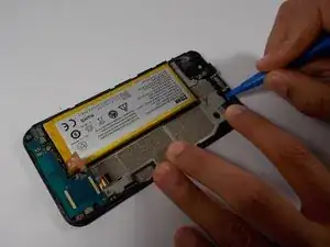 Используя пластиковый инструмент для открытия, аккуратно надавите на боковую сторону слухового динамика и поднимите.