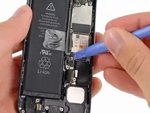 Используйте это руководство, чтобы удалить два соединительных кабеля с материнской платы вашего iPhone 5. Будьте очень осторожны, так как кабели соединителей хрупкие.