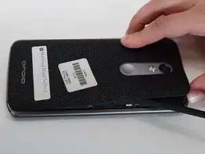 Используйте iOpener, термофен или фен, чтобы нагреть заднюю сторону телефона, чтобы размягчить клей, удерживающий заднюю панель.