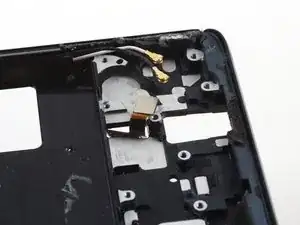 Используйте лопатку, чтобы поддеть черный коаксиальный кабель и отсоединить его от материнской платы.