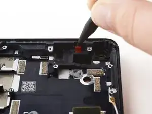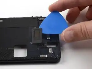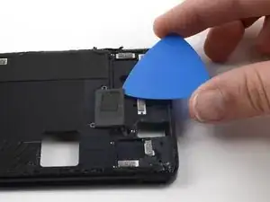 Используйте медиатор, чтобы аккуратно отделить шлейф датчика отпечатка пальца от среднего каркаса.
