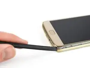 Вставьте край лопатки в выемку в правом нижнем углу телефона.