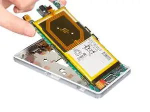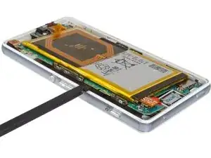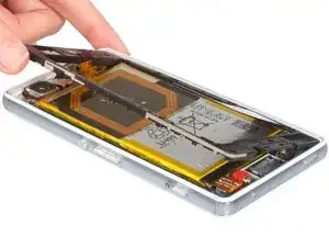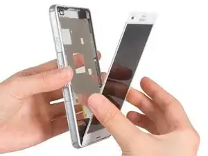 Отсоедините ЖК-экран с разговорным динамиком от срединной рамки. См. подробности в руководстве Замена ЖК-экрана Sony Xperia Z3 Compact. Наконец, Вы можете собрать телефон заново с новой срединной рамкой.