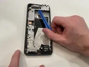 Подденьте среднерамную часть вверх и снимите её с телефона.