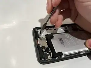 Поместите лопатку под металлическую пластину, закрывающую разъем зарядки.