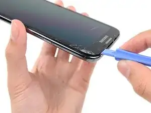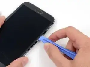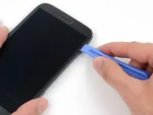 Вставьте пластиковый инструмент для вскрытия между средней рамкой и передней панелью по боковой стороне телефона.