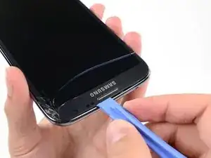 Подденьте вдоль верхней части телефона пластиковым инструментом для вскрытия.