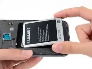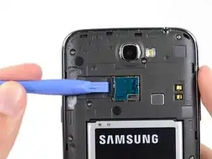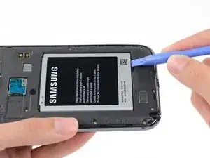 Вставьте пластиковый инструмент для вскрытия или палец в выемку батарейного отсека и приподнимите аккумулятор вверх.