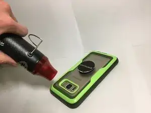 Если клей все еще крепкий, воспользуйтесь тепловой пушкой еще на 3-5 секунд, махая ею над областью.