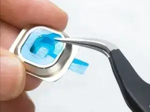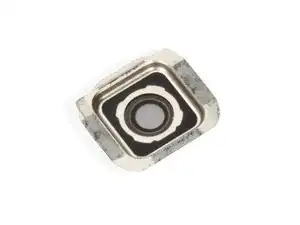 Затем подденьте кольцо объектива камеры с нижнего правого угла. Под ним имеется клей. Будьте осторожны и не поцарапайте металлическое кольцо острыми пинцетами.