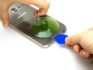 Сначала снимите заднюю крышку. К сожалению, у нас есть только Galaxy S6 с повреждённой задней крышкой, чтобы показать процесс замены стекла объектива камеры.