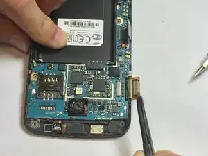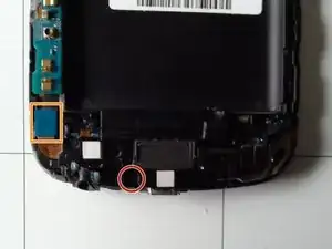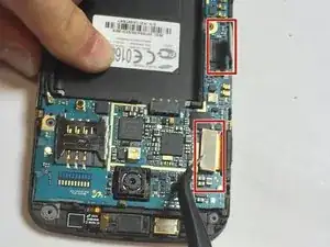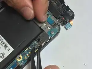 С помощью пинцета или пластиковой лопатки подденьте вибромотор и извлеките его из гнезда в средней рамке.