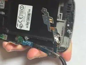 Начиная вблизи USB-порта, с помощью пинцета вытяните маленькую дочернюю плату из телефона.