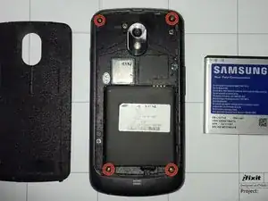 Снимите четыре винта Phillips 4,5 мм с задней стороны телефона.