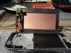 Если возможно, снимите шлейф и удалите старое стекло. Поскольку оно уже разбито, не стоит беспокоиться о повторном повреждении, но помните, что шлейф подключается к разъёму на обратной стороне ЖК-дисплея.