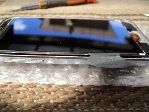 Вот снимок экрана в сборе. Переверните ЖК-дисплей обратно на место, следя за тем, чтобы клеевая полоска под ним оставалась целой. Осторожно обращайтесь с кабелем стекла и также переворачивайте его при установке, чтобы он оказался слева и вверх ногами. Протрите ЖК-дисплей, чтобы он был чистым и без пыли. Я использовал салфетку для ЖК-дисплеев.