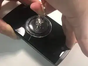 Когда iOpener воздействовал на экран примерно 5 минут, используйте присоску, чтобы отделить экран от остальной части корпуса.