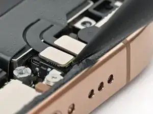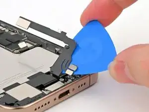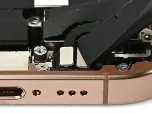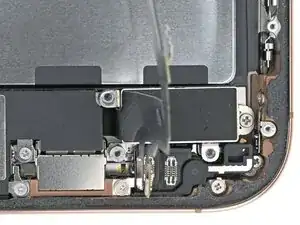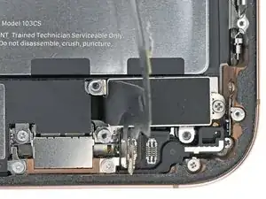 Используйте iOpener или фен, чтобы нагреть участок кабеля нижней сборки над Taptic Engine, пока он не станет горячим на ощупь.